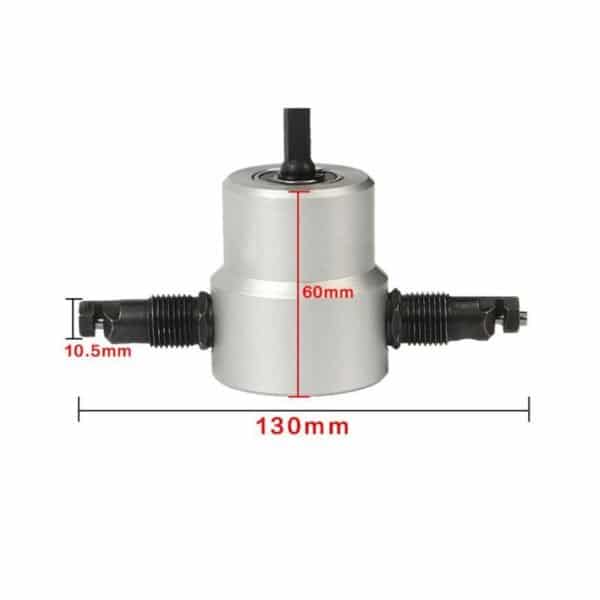 Drill Attached Metal Cutter is a practical cutting tool powered by electric and pneumatic drills (speed: between 1500 – 3000 rpm). It can cut metal sheets, such as steel, copper, aluminum, stainless steel and other thin metal plates. It is easy to install and operate.