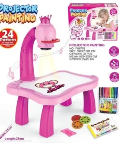 - Package Includes: Projection Board ×1;Slideshow ×3 (8 patterns each piece); Watercolor Pen ×12;Drawing Book ×1; Eraser ×1