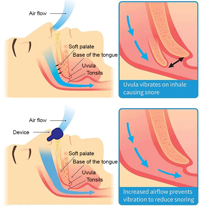 Electric Well Sleep ApneaStop Device help increase airflow through the nose during sleep. Alleviating congestion or restricted airways helps stop snoring and improves sleep quality. It has been proven in clinical trials to increase airflow through nasal passages up to 90% over nasal strips.