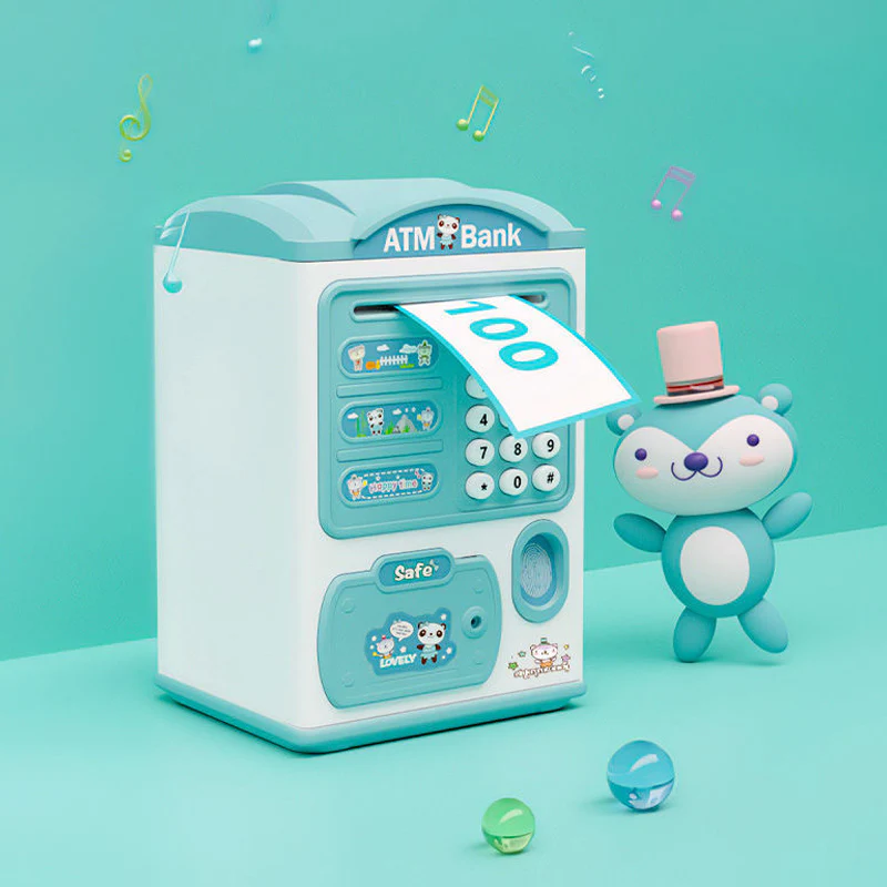 The electronic kid’s piggy bank is a positive way for kids to learn about the benefits of saving money.