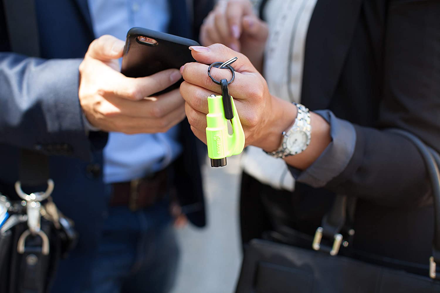 This 3-in-1 Emergency Tool allows you to cut a jammed seat belt and smash a side window in an emergency.