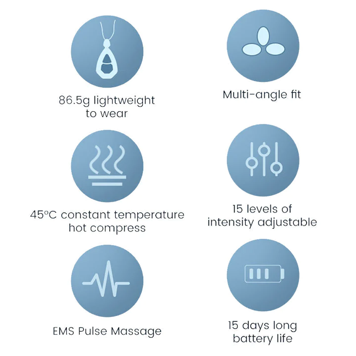 - PACKAGE INCLUDED 1 x EMS Portable Lymphatic Soothing Neck Massager(Normal/With 45°C Magnetocaloric)