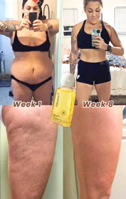 I rarely write reviews (although I rely on them tremendously when shopping online) but after doing my before and after picture, I had to share my results. Unfortunately we know that genetics plays a huge role with the dreaded cellulite so I was skeptical at first to try this. I’ve always been an avid exerciser and as age sets in (45 years young), I’ve realized that it’s becoming harder to keep this gross cheesy stuff at bay. I’m SO glad I decided to take a chance on all of the great reviews and try this product, the picture speaks for itself! I’ve also increased my workouts and water intake since starting the use of this oil and its made a huge difference. I still have a ways to go, but I didn’t realize how far my progress was until I compared my first pic 2 months ago until now. I HIGHLY recommend! 🙂