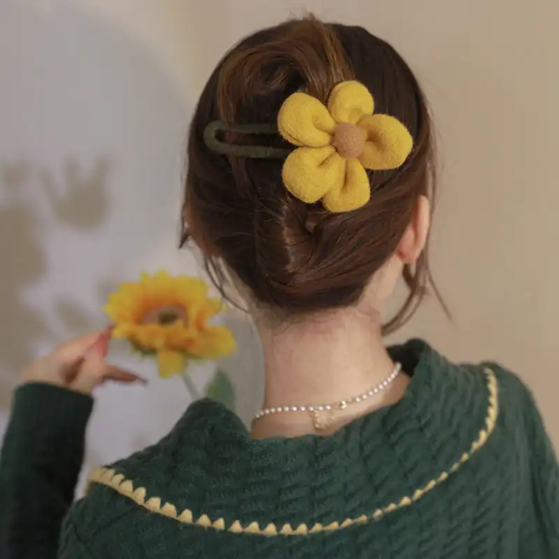Fashion New Plush Flower Clip, Fashion New Plush Flowers Hair Clip Colorful Ponytail Braid Grab Clip Large Duckbill Clip Girl Hair Claw Clip Ladies Clip has the following product features: