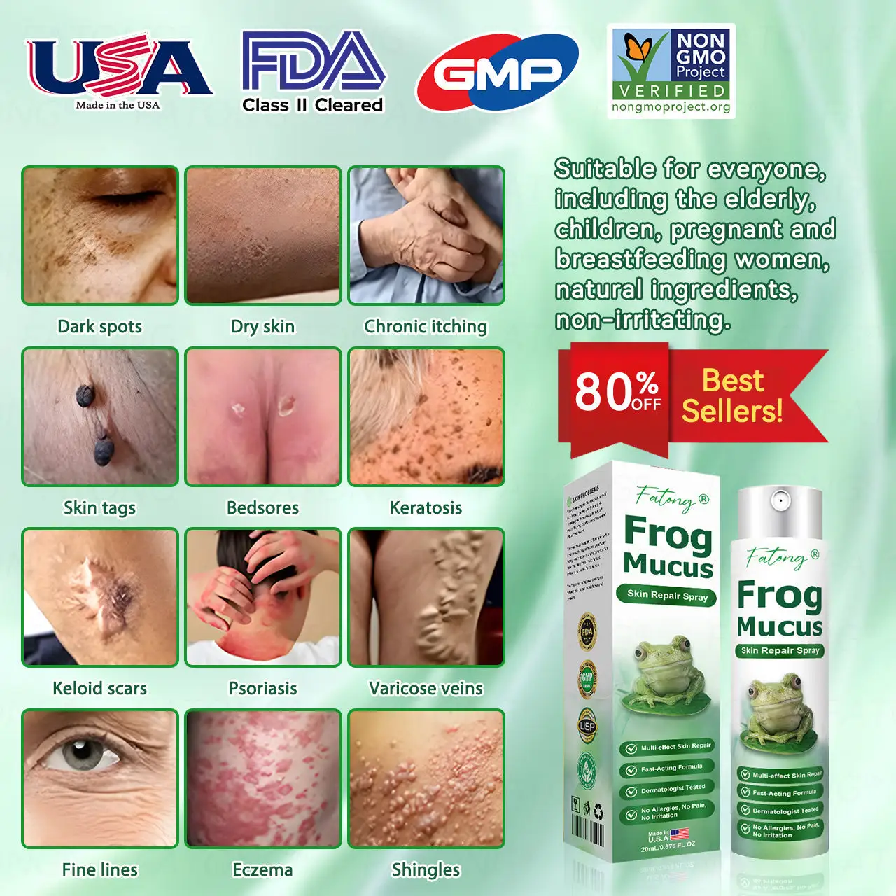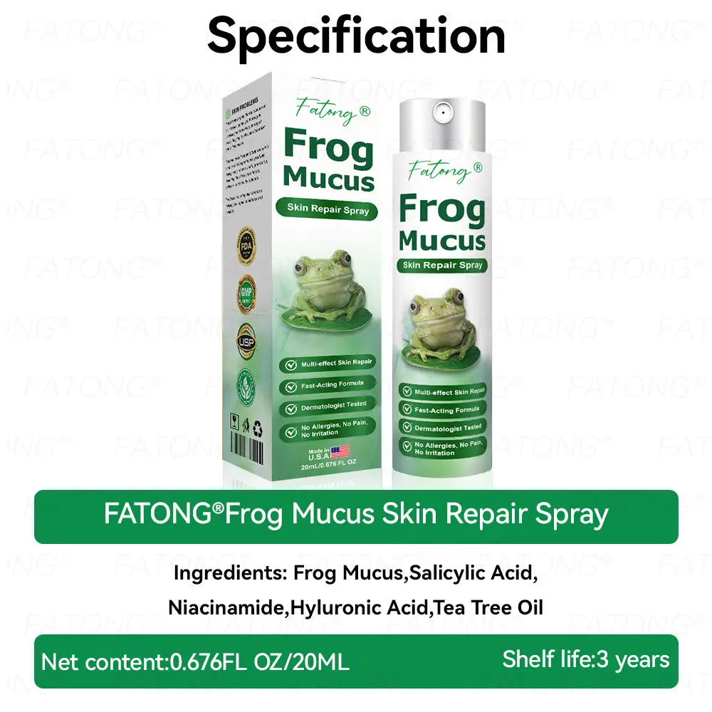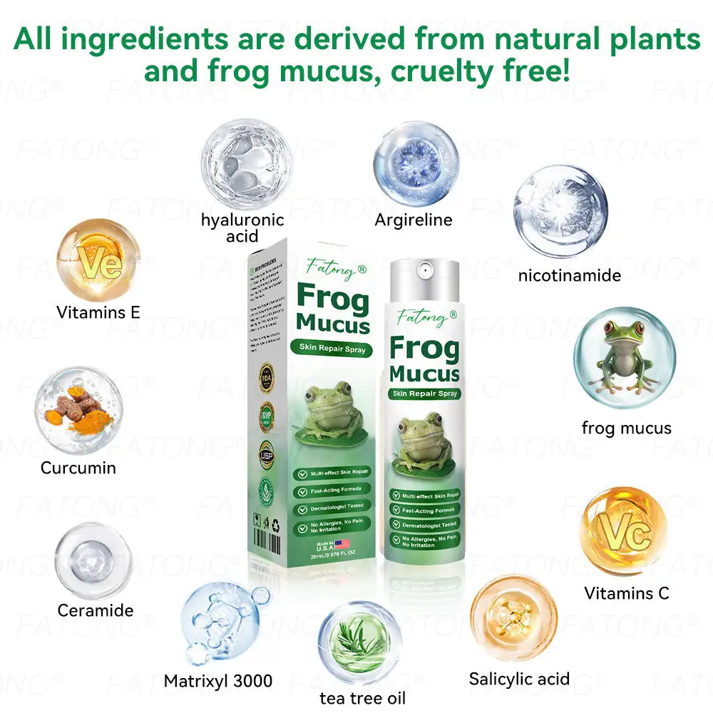 The Frog Mucus Skin Repair Spray is a potent remedy for various skin concerns, powered by the unique bioactive compounds found in frog mucus. Rich in proteins, peptides, and natural enzymes, it offers strong anti-inflammatory and antibacterial benefits, accelerating skin repair while helping to soothe irritation, reduce blemishes, and restore skin health.