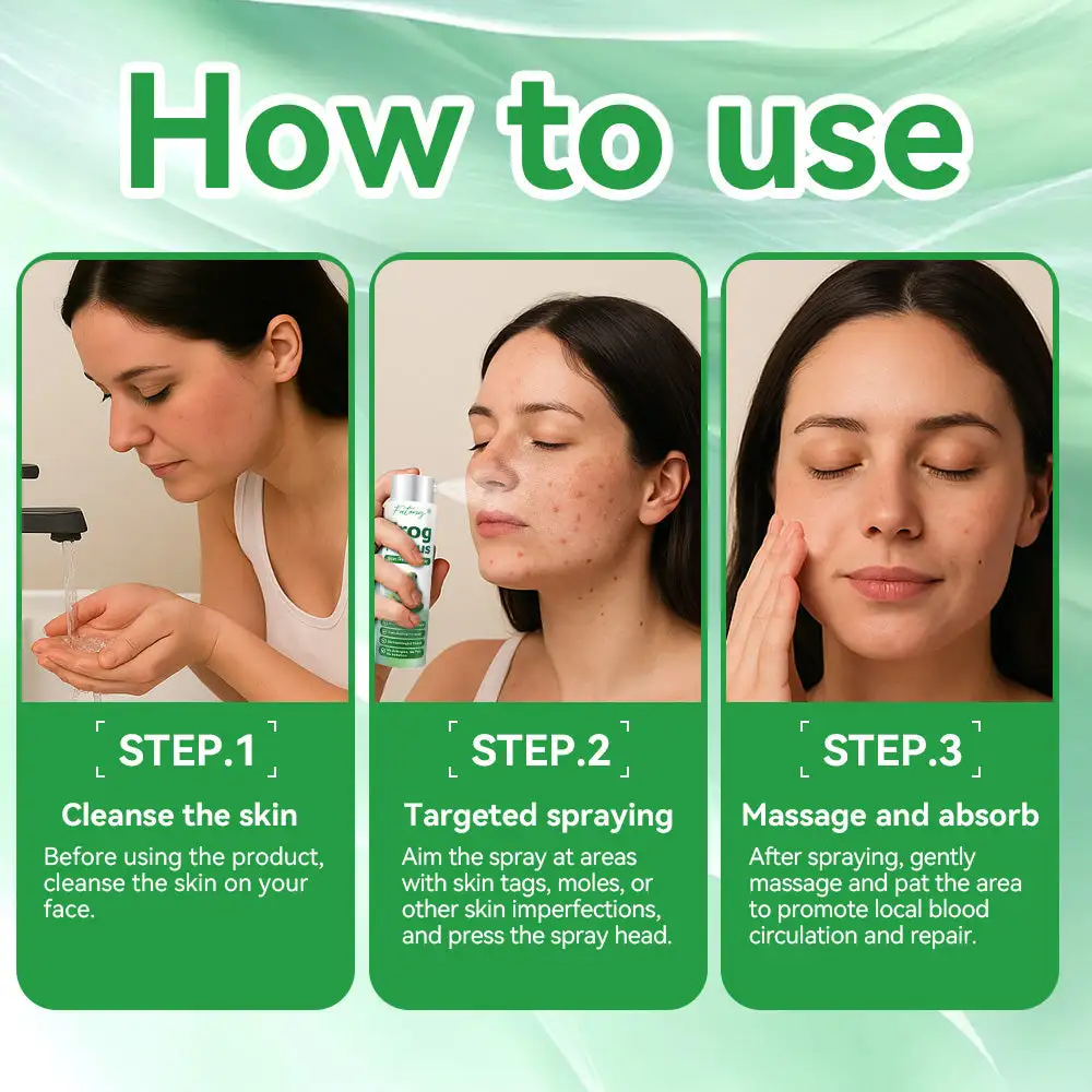 2.After cleansing,proceed to step2. Aim [๐น๐๐ก๐๐๐ยฎ ๐น๐๐๐ ๐๐ข๐๐ข๐ ๐๐๐๐ ๐ ๐๐๐๐๐ ๐๐๐๐๐ฆ] at the area with acne ,moles or other blemishes on the skin and gently press the spray head.