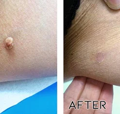 - Position the hollow end of the device over the skin tag.