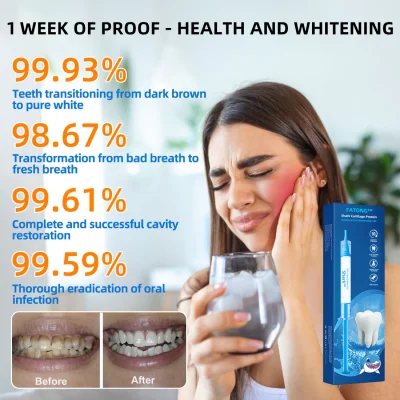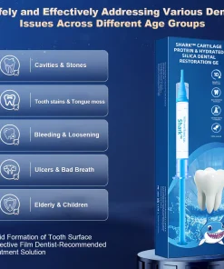 FITEETHONG™ Shark Cartilage Protein Dental & Oral Restoration GE is the latest product certified by the American Dental Association and recommended by dentists. It can perfectly solve all oral problems, including dental calculus, bad breath, oral ulcers, dental caries, bleeding gums, tooth sensitivity, gingivitis, loose teeth, periodontitis, swollen gums, tooth damage, tooth loss, etc. No side effects. Made from 100% natural. Suitable for everyone, including children, young people, and the elderly.