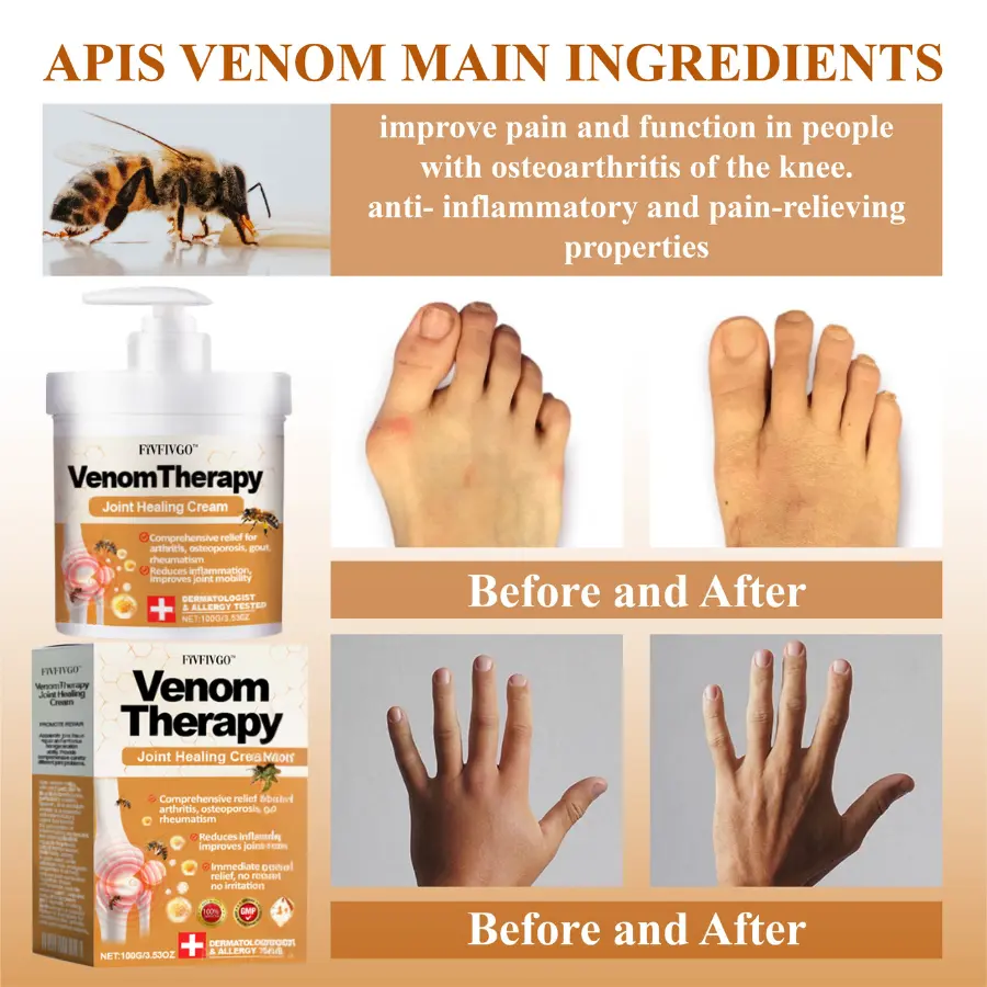 Fivfivgo™ VenomTherapy Joint Healing Cream uses this natural venom to target joint discomfort and restore movement, offering an effective non-invasive solution for those suffering from joint pain.