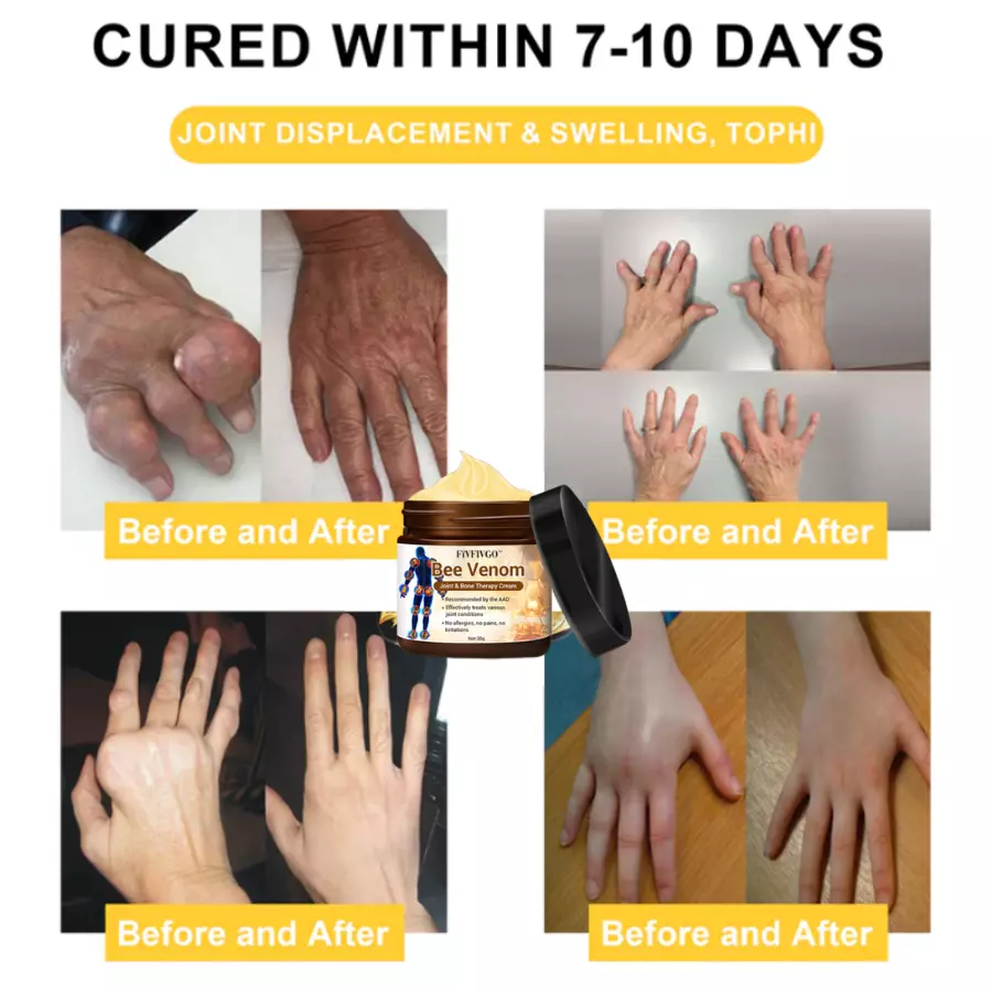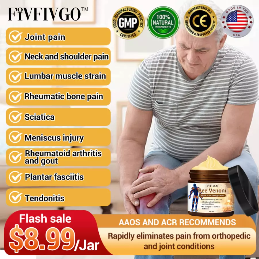 Say goodbye to lengthy treatments and unhealthy chemicals with Fivfivgo™ Bee Venom Arthritis Therapy Cream, the powerful solution for arthritis and joint pain. Backed by the expertise of top orthopedists, this cream provides ultra-strong pain relief in just 5 minutes and helps cure arthritis in 4 weeks.