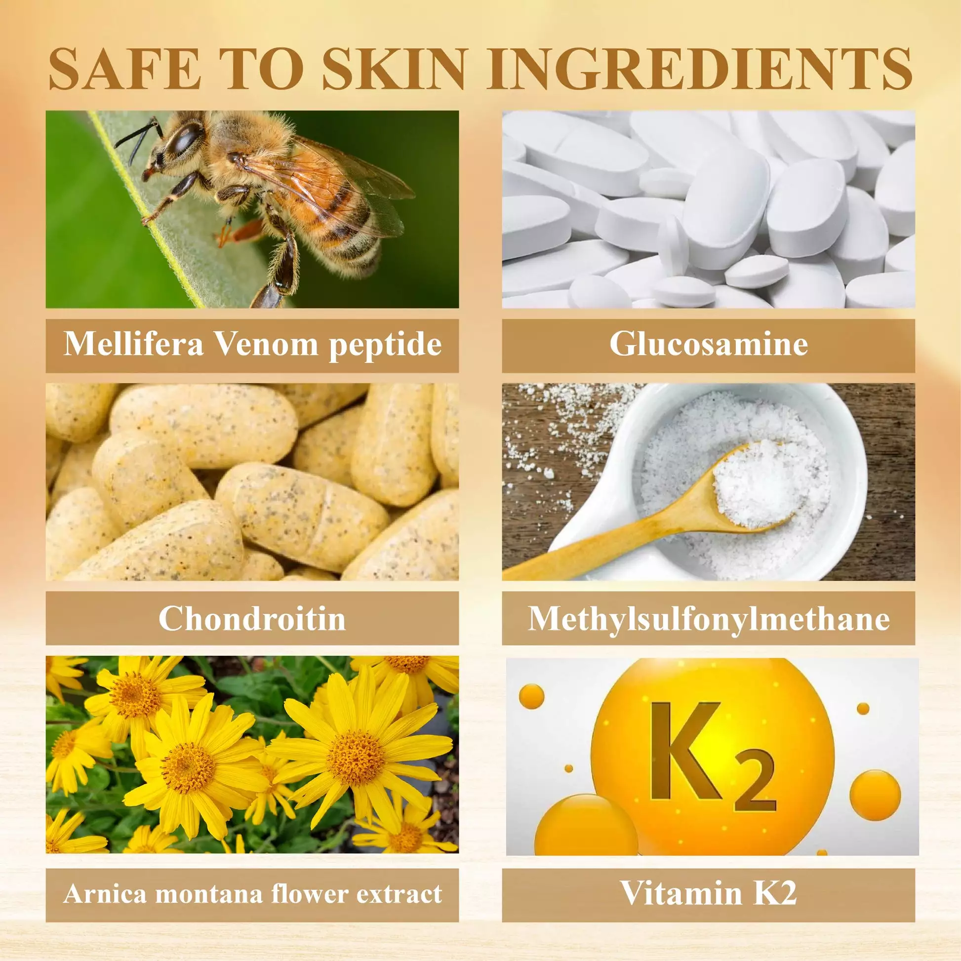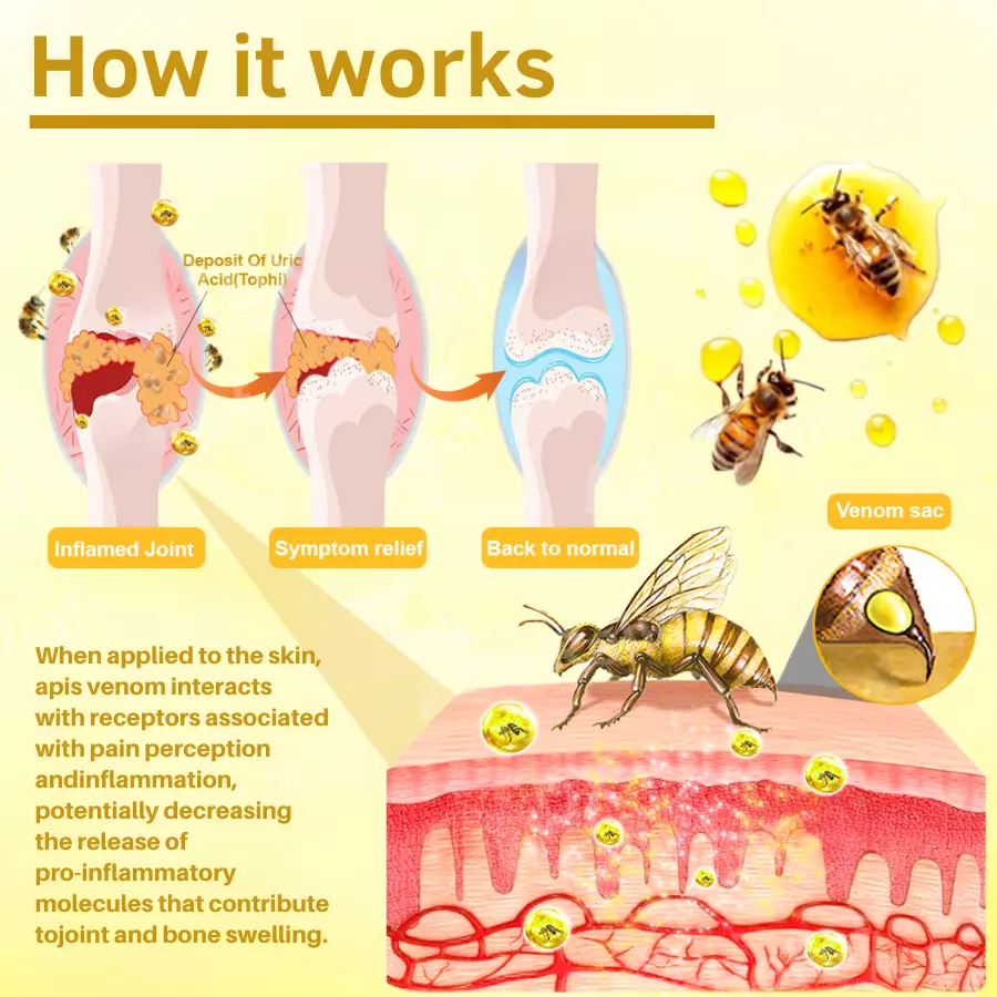 The active ingredient, Apis venom, contains peptides such as melittin, apamin, and adolapin. These peptides have strong anti-inflammatory properties, helping to reduce swelling and ease pain at the joint level. Apis venom has been used in traditional remedies for centuries due to its effectiveness in promoting joint health and alleviating discomfort.