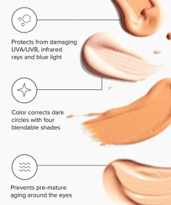 - Dot under each eye 3 times, and optionally, dot a tiny amount above the eye.