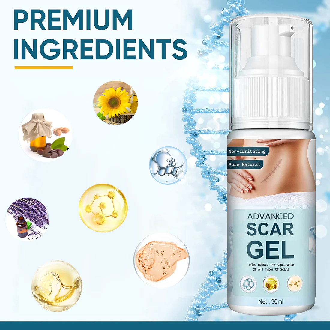 RemoveScar™ 100% Advanced Scar Remove gel – Made with allantoin and advanced scar Gel, our formula helps promote skin health, firmness, and elasticity to reduce the appearance of most types of scars, including surgical scars, burn scars, hypertrophic scars, and keloids. The silicone-based scar Gel forms a breathable layer to increase the skin hydration, protect the scar tissue, normalize the collagen synthesis and balance the skin growth procedure,which can make your skin look smooth and even!