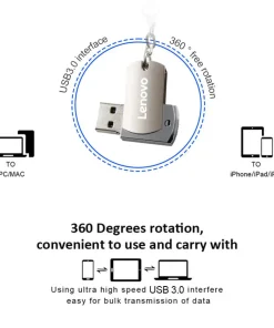 Lenovo 2T 1T U Disk Mobile Phone 128/256/512GB High Speed Usb 3.0 Computer 360 Free Rotation Metal Flash Memory Stick For Phone