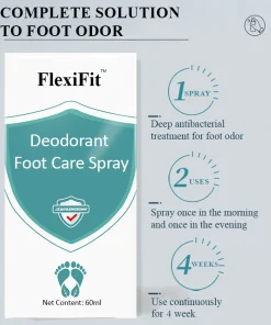 - Package: 1 x FlexiFit™ Deodorant Foot Care Spray