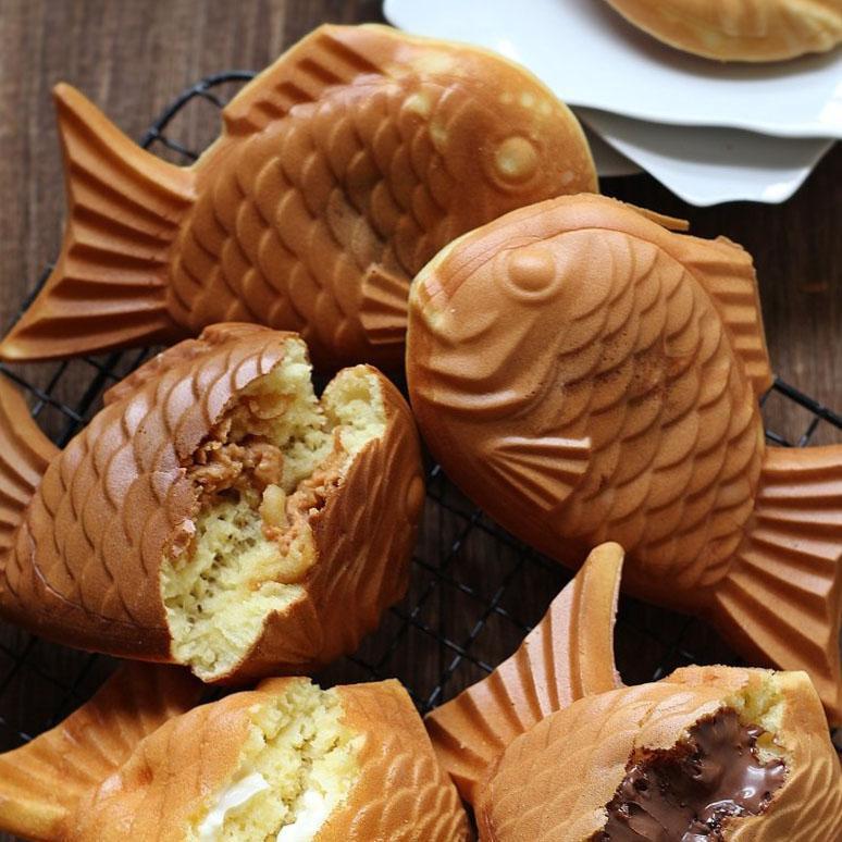 This outstanding skillet is a custom-sized home cooking pan for Taiyaki, a popular Japanese street food. The most common filling for these pancakes is red bean paste (made from sweetened azuki beans), but you can also use butter, jelly, Nutella, ice cream, or any other yummy filling of your choice!