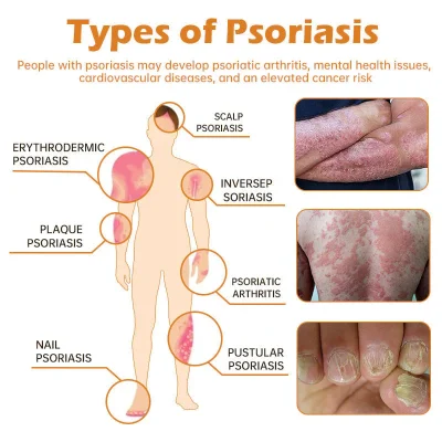 Psoriasis is a chronic autoimmune condition where the body’s immune system mistakenly attacks healthy skin cells, causing rapid skin cell growth. This leads to the formation of thick, scaly patches of skin. These plaques commonly appear on the scalp, elbows, knees, and lower back but can develop anywhere. Psoriasis may also affect the nails, causing changes like pitting, thickening, or discoloration, as well as detachment of the nails from the nail bed.