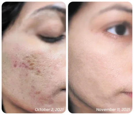 I’m already seeing a noticeable improvement in my deep pockmarks caused by my hormonal acne since I started using this roller for several weeks now. I’ve struggled with acne for years and it’s left behind some pretty stubborn dark scars, but this roller has been showing a great difference. The microdart technology allows the hyaluronic acid to penetrate deep into my skin and flatten up the scars, making them less noticeable. I’m so happy I found this product and I’m excited to see how much more it can improve my skin over time.