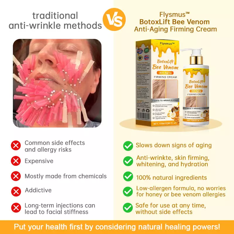 ✓ Scientific Formula: Flysmus™ BotoxLift Bee Venom Anti-Aging Firming Cream is scientifically developed to maximize skin vitality and overall appearance.
