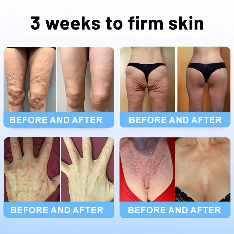 “At 30, I started noticing wrinkles and sagging skin on my thighs, which worsened after losing weight. I felt self-conscious about the loose skin, and it only got worse as I aged. But after using this product for a month, the difference is incredible. My thighs are firmer, and the sagging on my neck and arms has disappeared. It really works!” – Sarah Miller