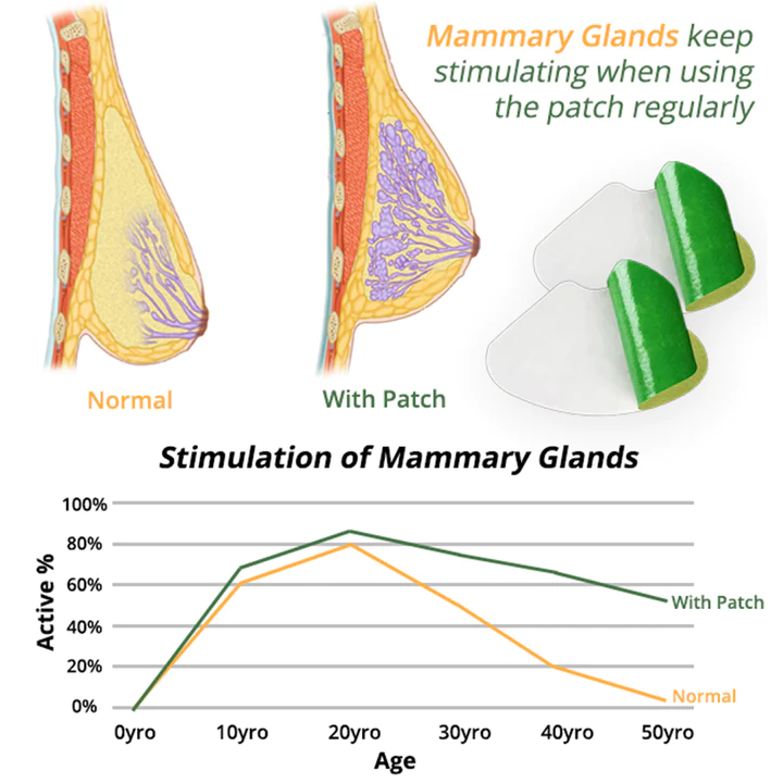 - Usage Direction : Apply the patches under the breasts for 6 – 8 hrs/day