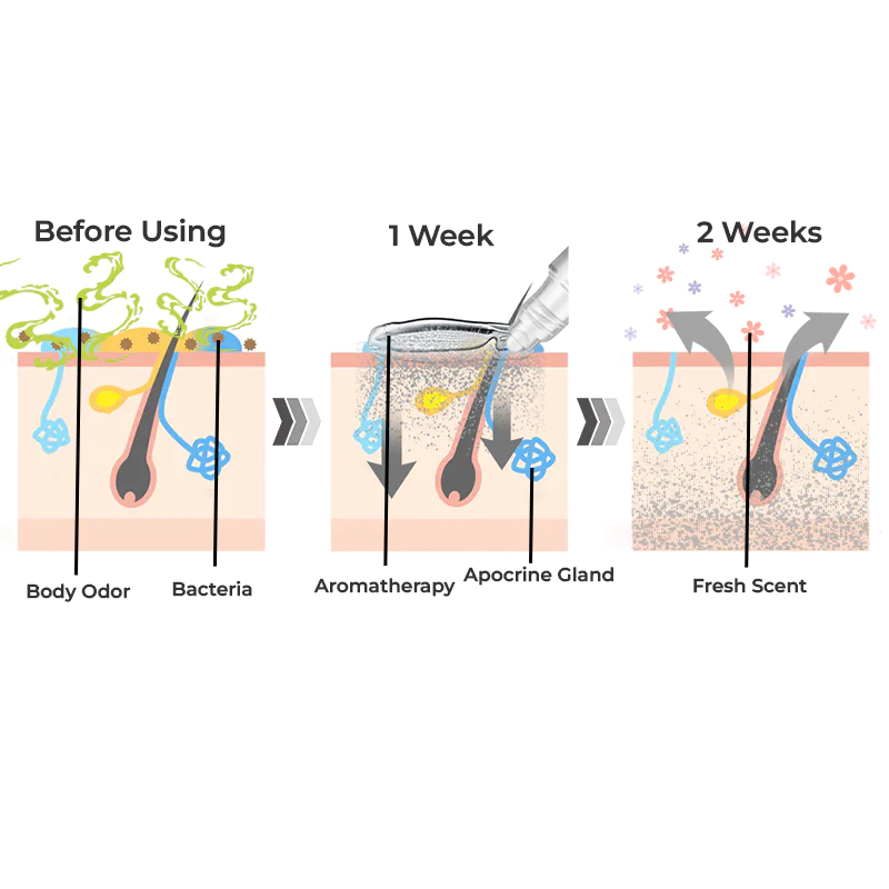 Our flysmus™ LesOdeurs Aromatherapy Body Perfume has triclosan helping to unblock sweat gland and eliminate the bacteria from skin surface. It works to preventing the combination of sweat gland and bacteria to generate body odor. For the long time using, it can definitely removing body odor.