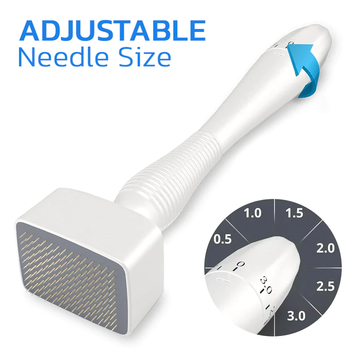 The flysmus™ PockmarksNeedling Collagen Derma Stamp stands out with its adjustable needle length ranging from 0 to 3mm. This versatile feature allows for precise customization, catering to various skin concerns. Whether addressing fine lines, acne scars, or uneven texture, the ability to adjust needle length offers tailored solutions, making it a versatile and effective tool for skin rejuvenation at different depths.