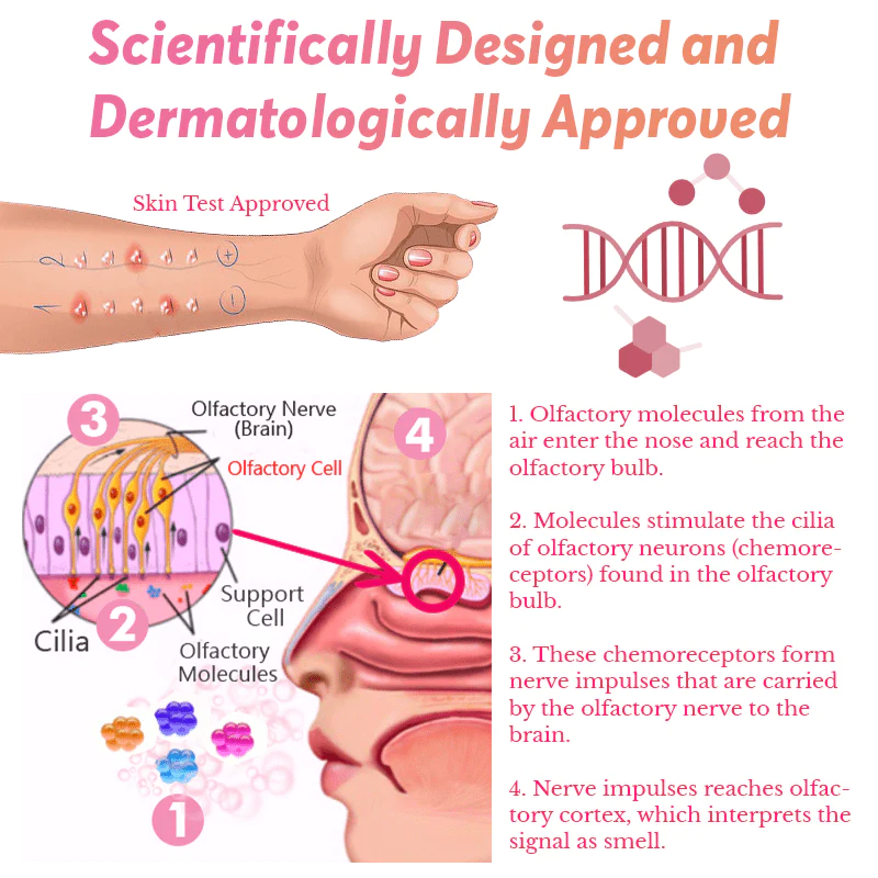 Our perfume is backed by scientific formulation, carefully selecting and blending specific scent molecules that work harmoniously to create a captivating and well-balanced fragrance that appeals to the olfactory senses. Also, our scientifically designed perfume undergoes rigorous dermatological testing to ensure it is safe and gentle on the skin. With a focus on skin compatibility, you can confidently wear our perfume without worrying about any irritations or sensitivities.