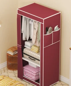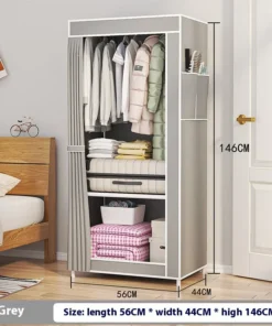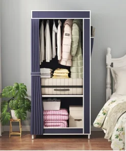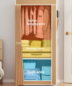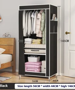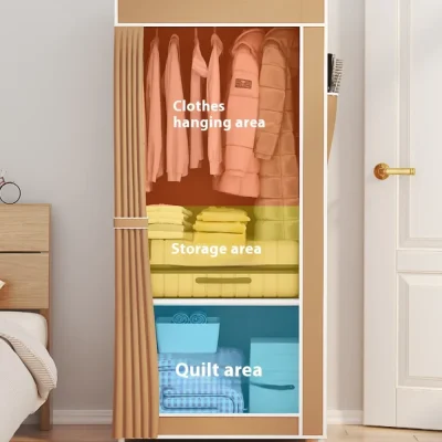 Minimalism Fabric Wardrobes Bedroom Plastic Storage Wardrobes Storage Cabinet Dust Proof Foldable Clothing Hanger with Curtains