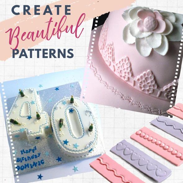 cake decorating tools Set gives you an easy way to decorate fondant, doughs and pastries from the comfort of your home! cake decorating tools Perfect for pastry edging, simply press to imprint puffed up patterns on your cake!