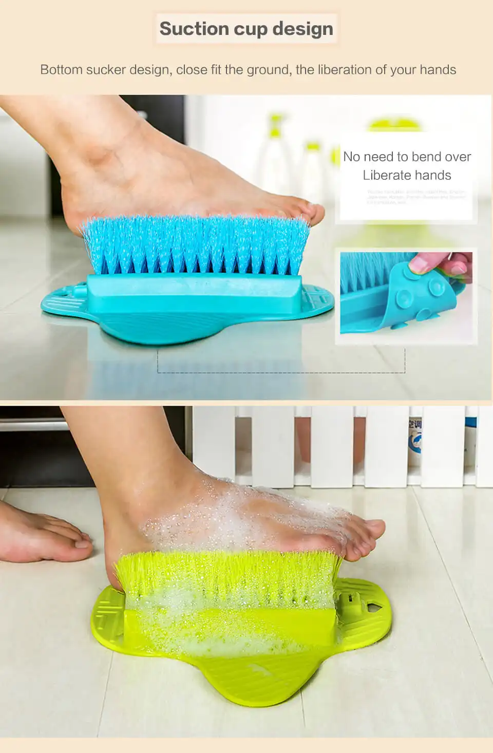 This foot scrubber is really great to use in that it helps with not having to bend over in the shower to wash your feet. I have noticed how soft my feet are and no dead skin build up. Just moving your feet back and forwards and side to side feels wonderful on tired feet. It has good suction that keeps it in place while in the shower. I wish I would have had this a few years ago. I am very happy with my purchase of this product and would tell my friends and family about it……..Thank you.