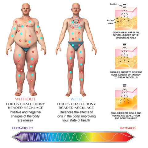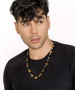 FORTIS Chalcedony Beaded Necklace replenishes your strength and stamina while supporting your weight-loss goals. Carefully curated with natural Tiger Eye, Garent, and Arfvedsonite, ensuring durability and longevity.