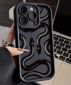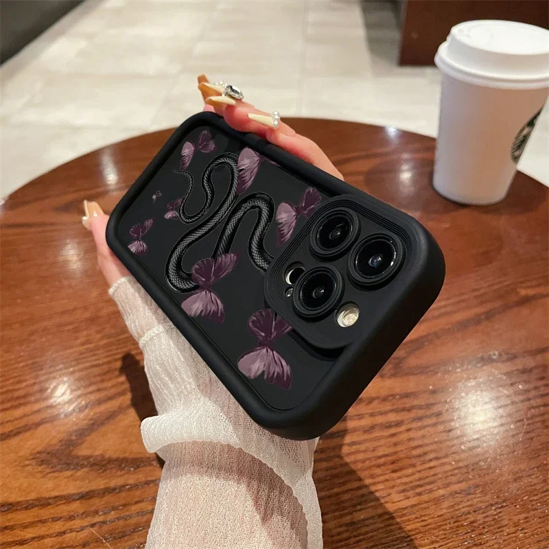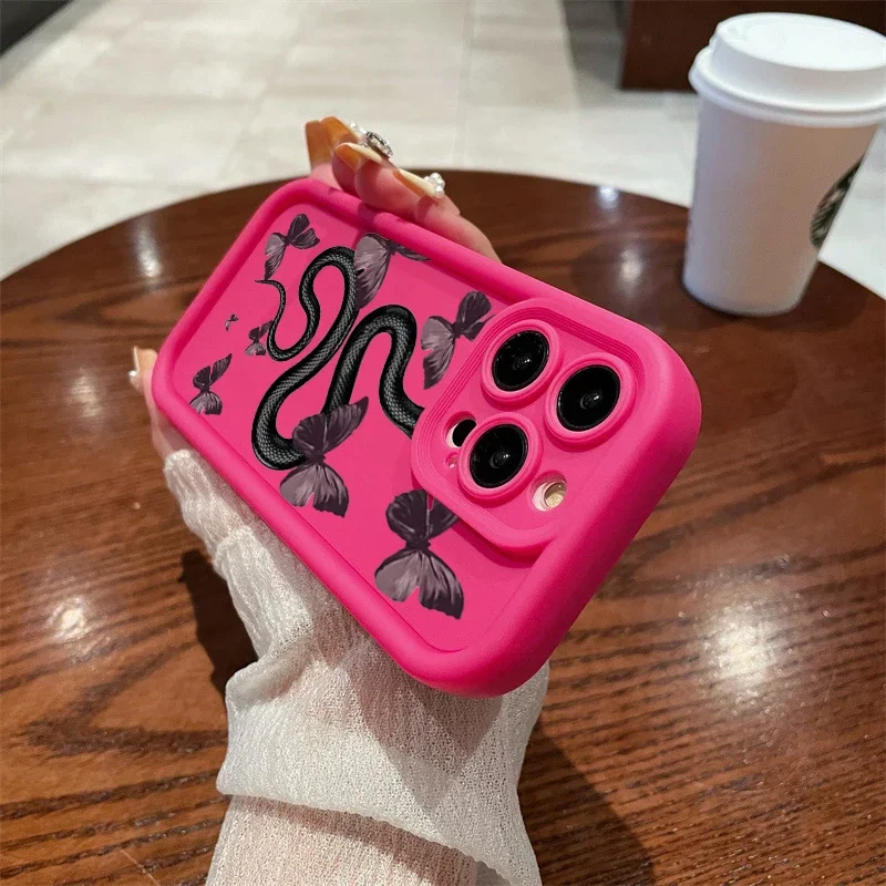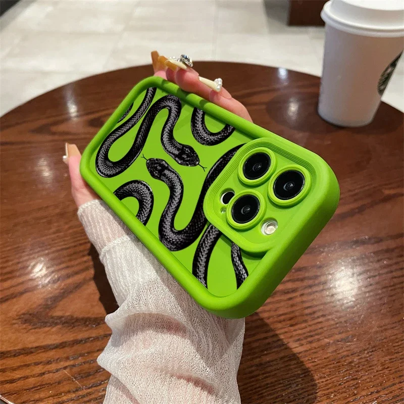 Cute Doodle Funny Snake Case for IPhone 14 13 12 11 15 Pro Max XS XR X 8 7 Plus SE2 IPones 14Pro 15Pro Matte Soft Silicone Cover