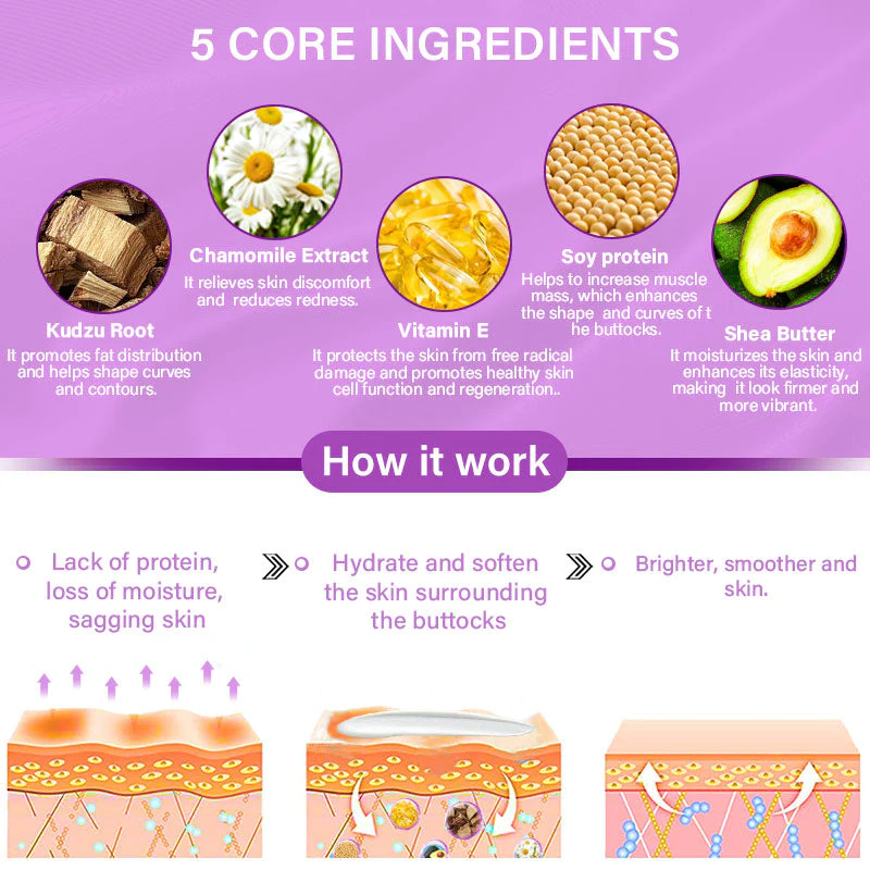 Furzero™ Butt Enhancement and Firming Cream can help increase skin metabolism and enhance the growth of buttock muscles, leading to a more toned and plump hip and butt appearance.