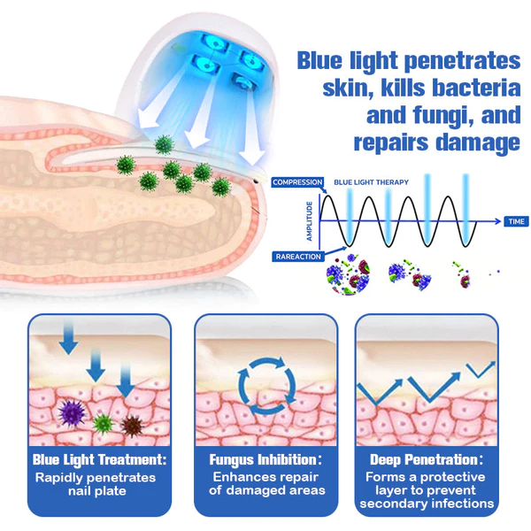 The Furzero™ Nail Fungus Cleaning Laser Relief Device combines blue light therapy with infrared cold laser technology to efficiently eradicate fungus, reduce inflammation, and ward off infections. Consequently, it alleviates nail discomfort and swelling, eliminates pus or pustules, curbs itching, flaking, toenail thickening, and addresses various related issues.
