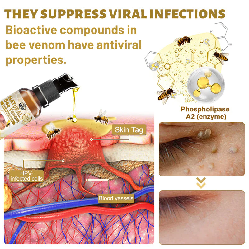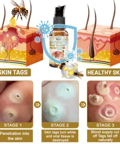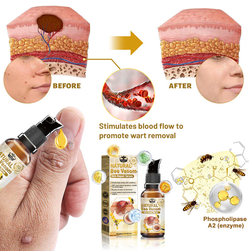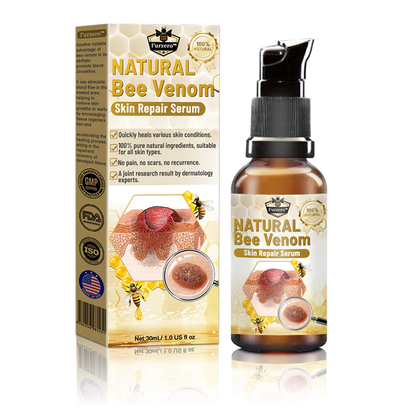 Furzero™ Natural Bee Venom Skin Repair Serum is a solution that harnesses the powerful properties of bee venom to effectively target various skin imperfections, including skin tags, moles, warts, and spots. Infused with active compounds extracted from bee venom, this advanced formula breaks down and gently removes unwanted growths.