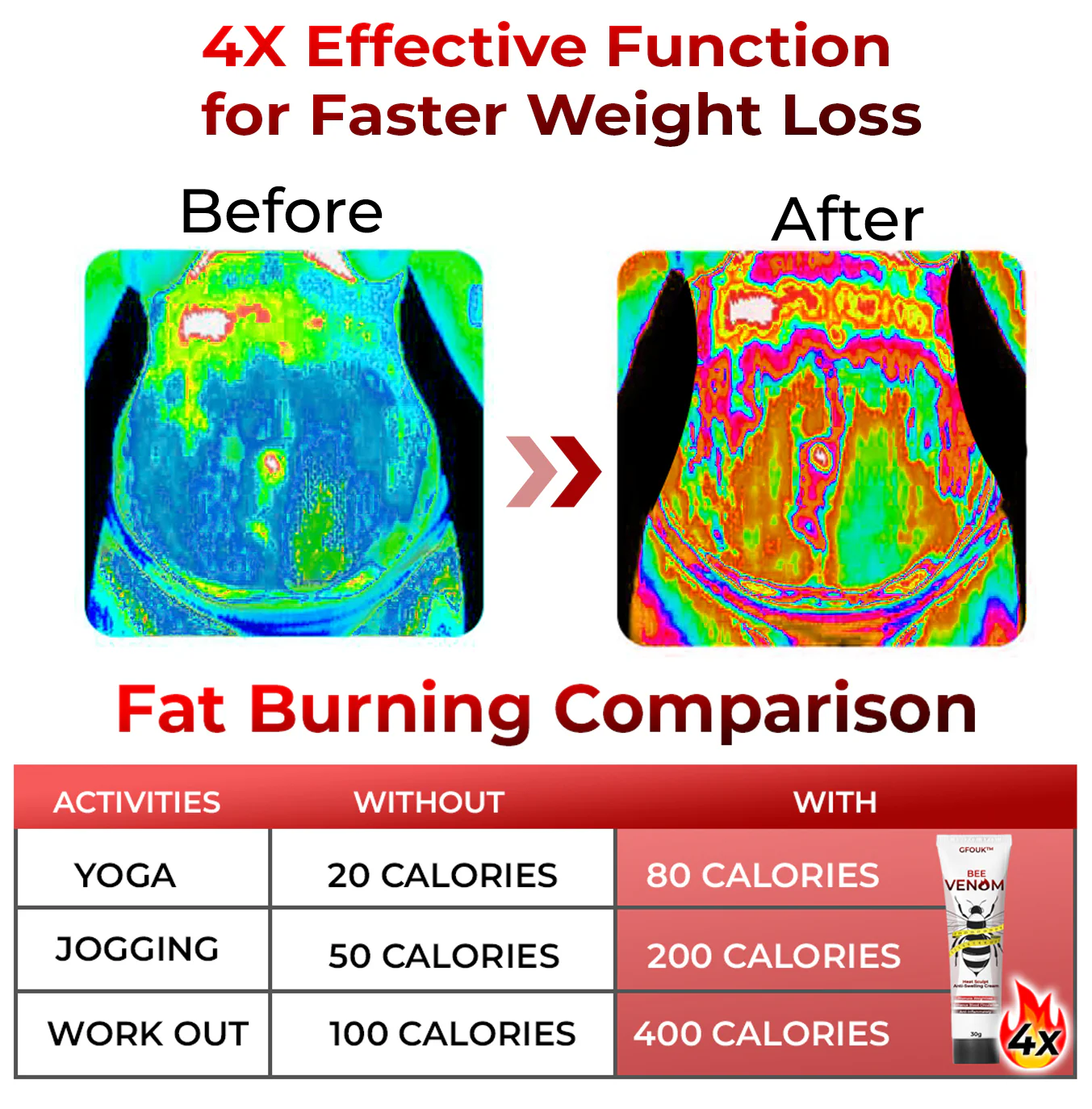 - Our GFOUK™ Bee Venom S-Shape Cream is formulated with powerful ingredients derived from bee venom which are Apamin and Histamine that promote improved blood circulation. Enhanced circulation aids in weight loss by facilitating better fat mobilization and elimination of metabolic waste.GFOUK™ Bee Venom Heat Sculpt Anti-Swelling Cream