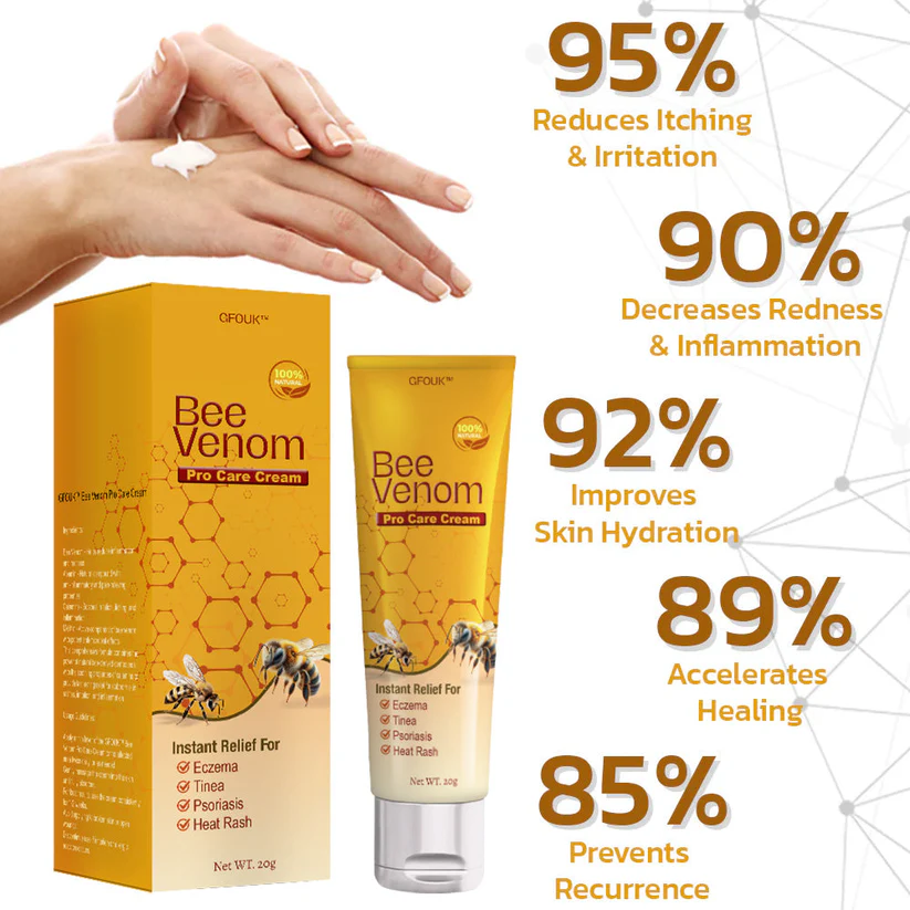 GFOUK™ Bee Venom Pro Care Cream has been clinically tested and validated for its efficacy and safety in treating various skin conditions, including rashes, eczema, intertrigo, and several different skin problems. The formulation of Bee Venom Pro Care Cream contains a synergistic blend of active ingredients known for their therapeutic benefits in dermatology.