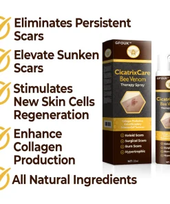 GFOUK™ CicatrixCare Bee Venom Therapy Spray utilizes the powerful properties of bee venom to effectively reduce various types of scars. Infused with potent enzymes and active compounds, this advanced formula works by significantly reducing inflammation and boosting collagen production. Regular use of GFOUK™ CicatrixCare Bee Venom Therapy Spray can diminish the appearance of scars, leaving your skin looking clearer and more rejuvenated.