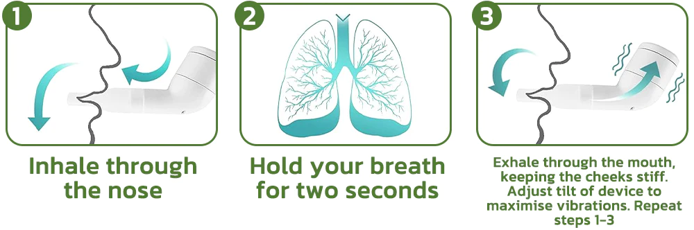 - 3. Allow these vibrations to effectively dislodge mucus from the airway walls.