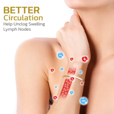 Furthermore, the GFOUK™ Frida Magnetique Lvmphvity Cleaning Bracelet also emits negative ions, which heighten the cell membrane’s permeability. This enhancement facilitates the absorption of tissue fluid into lymph vessels, thereby preventing blockages within the lymphatic system.