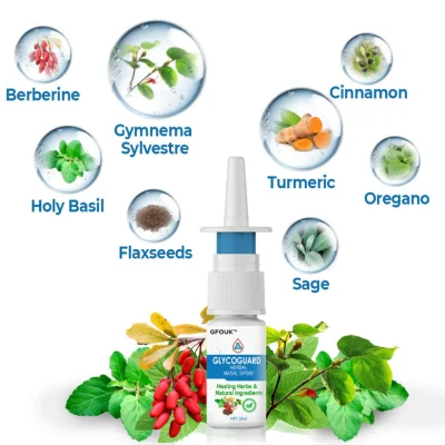 The GFOUK™ GlycoGuard Herbal Nasal Spray utilizes the powerful ingredient Gymnema Sylvestre, known as the “sugar destroyer,” to balance blood sugar levels. This herb blocks receptors in the intestines responsible for sugar absorption and stimulates the pancreas to produce more insulin. These properties make it a valuable addition to diabetes management under professional guidance.
