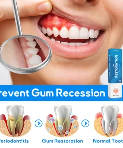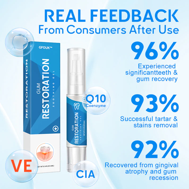 Specially formulated to address gingival atrophy and gum recession, this advanced gel offers a holistic approach to gum health restoration. Powered by a unique blend of natural ingredients and scientifically proven compounds, GFOUK™ Gum Restoration Gel provides a soothing and rejuvenating experience for your gums. Say goodbye to discomfort and hello to a healthier, more vibrant smile with GFOUK™ Gum Restoration Gel.