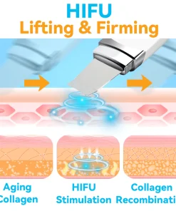 GFOUK™ HIFU Face Lifting Instrument concentrates the energy of high frequency sound waves in the dermis. This concentrated energy causes thermal damage to the tissues and activates the body’s repair response. During this process, collagen synthesis within the skin is stimulated, promoting the production and alignment of new collagen, which enhances the skin’s firmness and elasticity.
