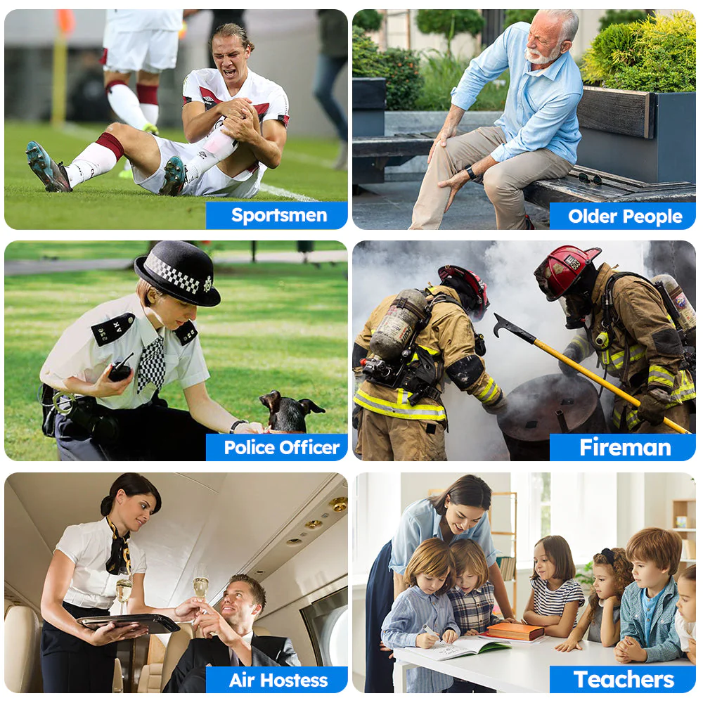 The GFOUK™ Hot Pulse Knee Massager transmits force and vibration to the knee through high frequency vibration (2000-3500 vibrations/min), which increases blood flow to the tissues, relaxes the muscles, and resonates the body tissues to produce relative displacements, reduces adhesions, restores elasticity to the knee, and relaxes tense and stiff knees, which is beneficial for the rehabilitation of the knee, ligaments and tendons.