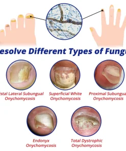 The GFOUK™ NailFortify Rapid Growth Treatment Serum is formulated with antifungal ingredients that help eliminate onychomycosis and prevent it from returning. It works by inhibiting fungal growth and keeping it from spreading. Additionally, it can strengthen nails and improve overall health, making them more resistant to fungal infections in the future. It is effective for several fungal types, such as distal subungual onychomycosis, superficial white onychomycosis, proximal subungual onychomycosis, endonyx onychomycosis, and total dystrophic onychomycosis.