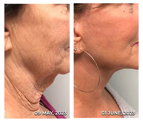 - 3. Use your fingertips to gently apply the serum to your neck, moving upwards from the base of your neck towards your jawline.