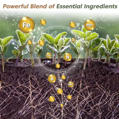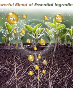 - Ingredients: Nitrogen, Phosphorus, Potassium, Iron, Manganese, Zinc, Copper, Molybdenum, Boron, Vitamins and Enzymes.