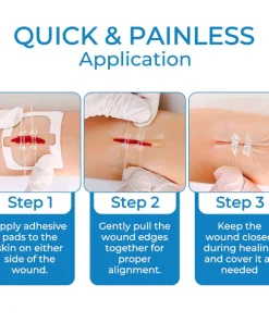 - Step 1: Position adhesive pads on either side of the wound and affix them to the skin.