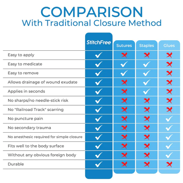 I had a puncture wound on my knee recently, and the GFOUK™ StitchFree Closure Device was a lifesaver. It was the only first aid solution that effectively kept the skin together during the healing process. I highly recommend adding it to any First Aid Kit – it proved to be invaluable in a pinch.